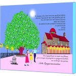 Ονειρευόταν να σηκωθεί, να περπατήσει και να κατέβει στο χωριό,που το έβλεπε κάθε μέρα να σκαρφαλώνει προς το μέρος του χτισμένο αμφιθεατρικά. Εκεί, να συναντήσει τον φίλο του, τον σοφό γεροπλάτανο, να κάνουν έναν περίπατο μαζί μέχρι την Πηγή, την “Γραμμένη Πέτρα”, να πιουν νερό να δροσιστούν. Τίποτε από όλα αυτά όμως δεν μπορούσε να γίνει…