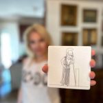 Έχει το κεφάλι σκυμμένο και στραμμένο προς την στήλη που βρίσκεται μπροστά της.